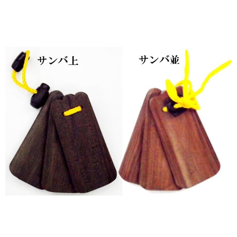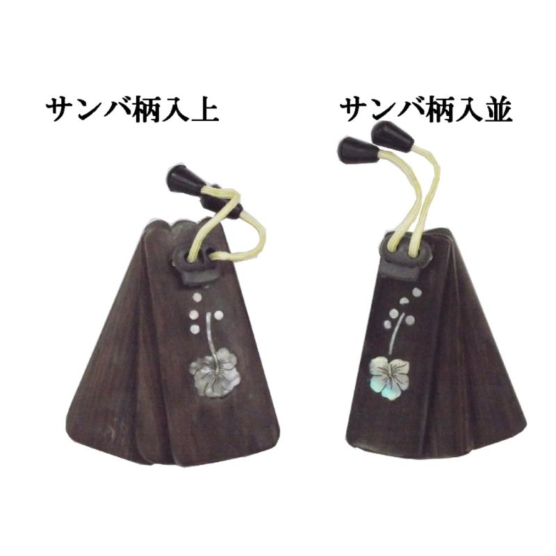 沖縄の軽快な民謡に欠かせないカスタネットみたいな 楽器です。三板とも書く。 三枚の板のそれぞれの間に人差し指と中指を挟むようにして構え,親指と薬指ではじくように弾くのが基本。