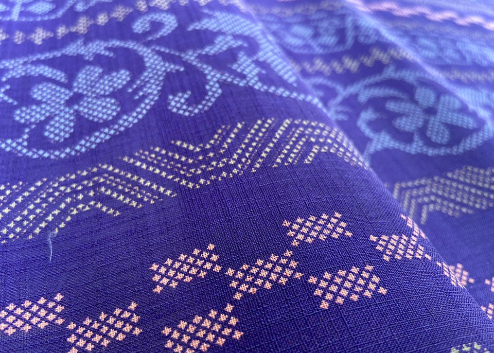 【ポリエステル 花柄ミンサー 紺色】マスク生地・布単品100cm×38cm