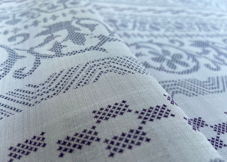 【ポリエステル 花柄ミンサー 白色】マスク生地・布単品100cm×38cm