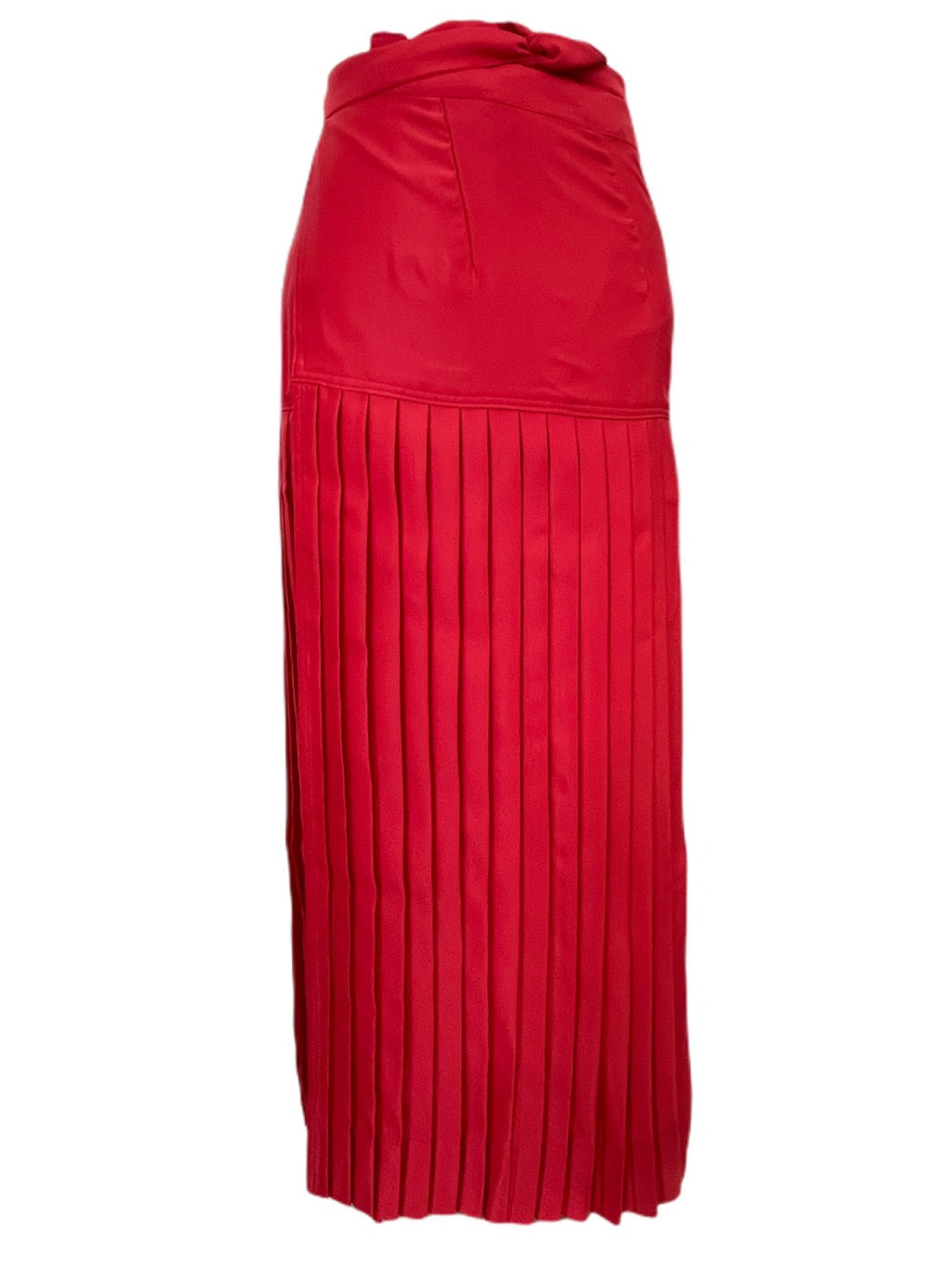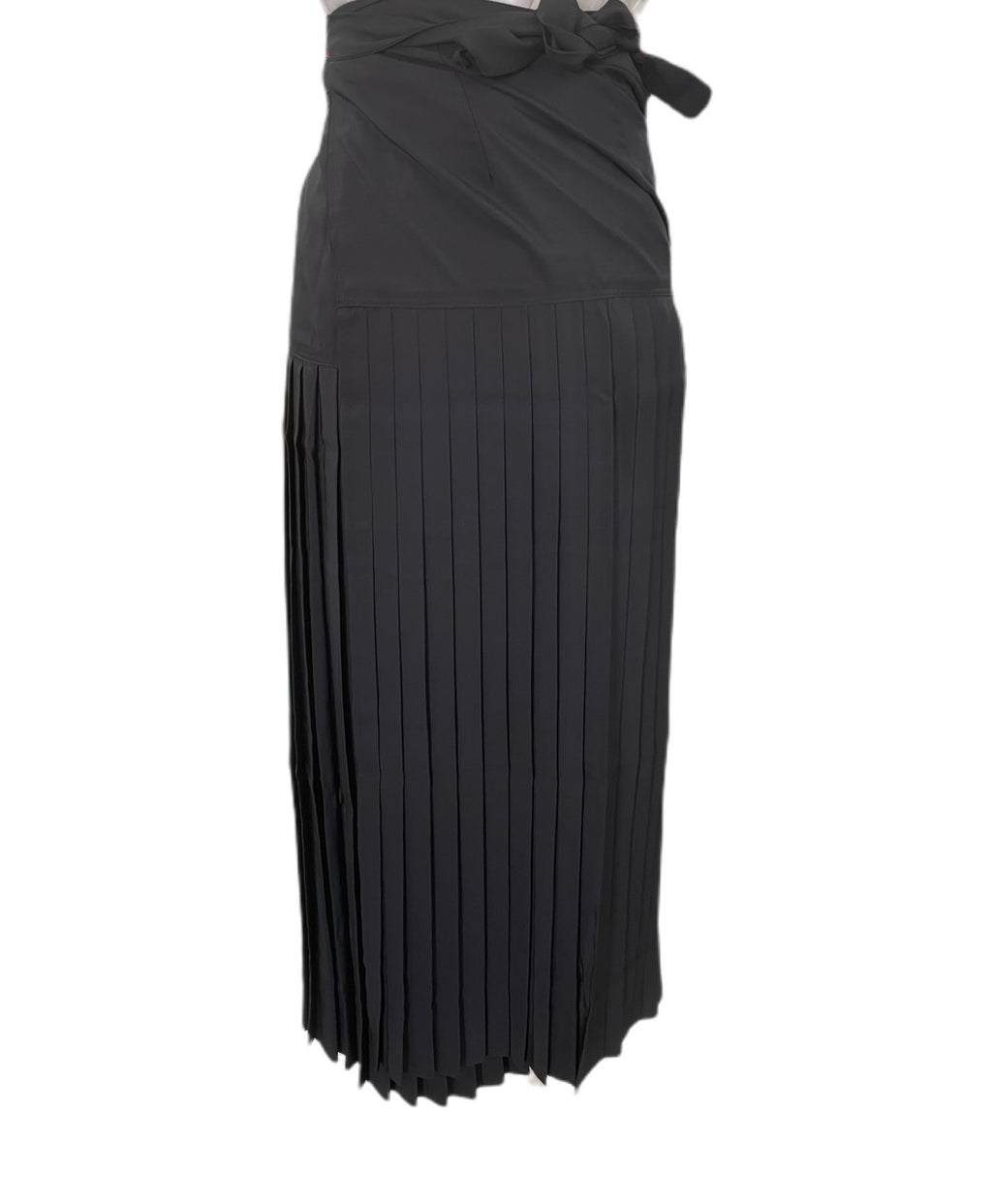 プリーツ状で巻きスカートになってます。 腰のあたりにはプリーツがありませんので、スッキリと着用していただけます。